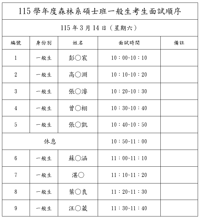 二. 面試時間與地點:115年3月14日(星期六);森林系館RE014教室。